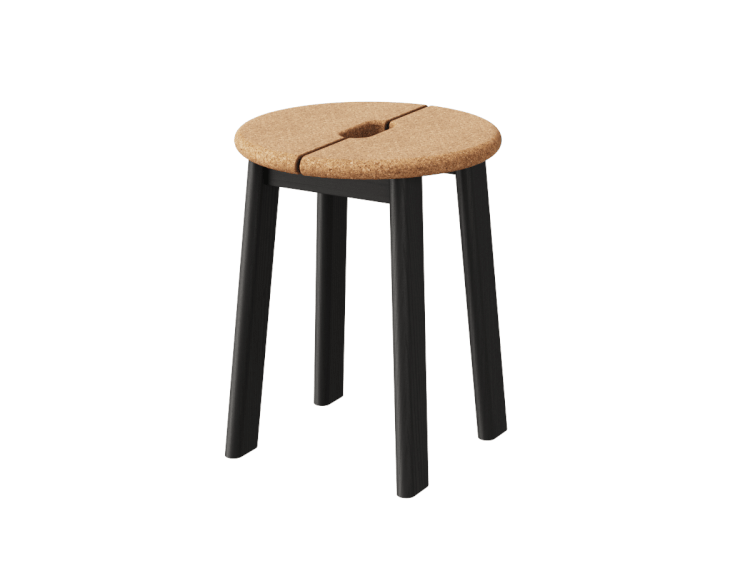 It is a perfect companion for a bar or the kitchen at home, it can also be used as a side or night table. A piece to always have around, with a variety of material and finishes to choose from: cork or solid ash top, stained or clear ash structure.